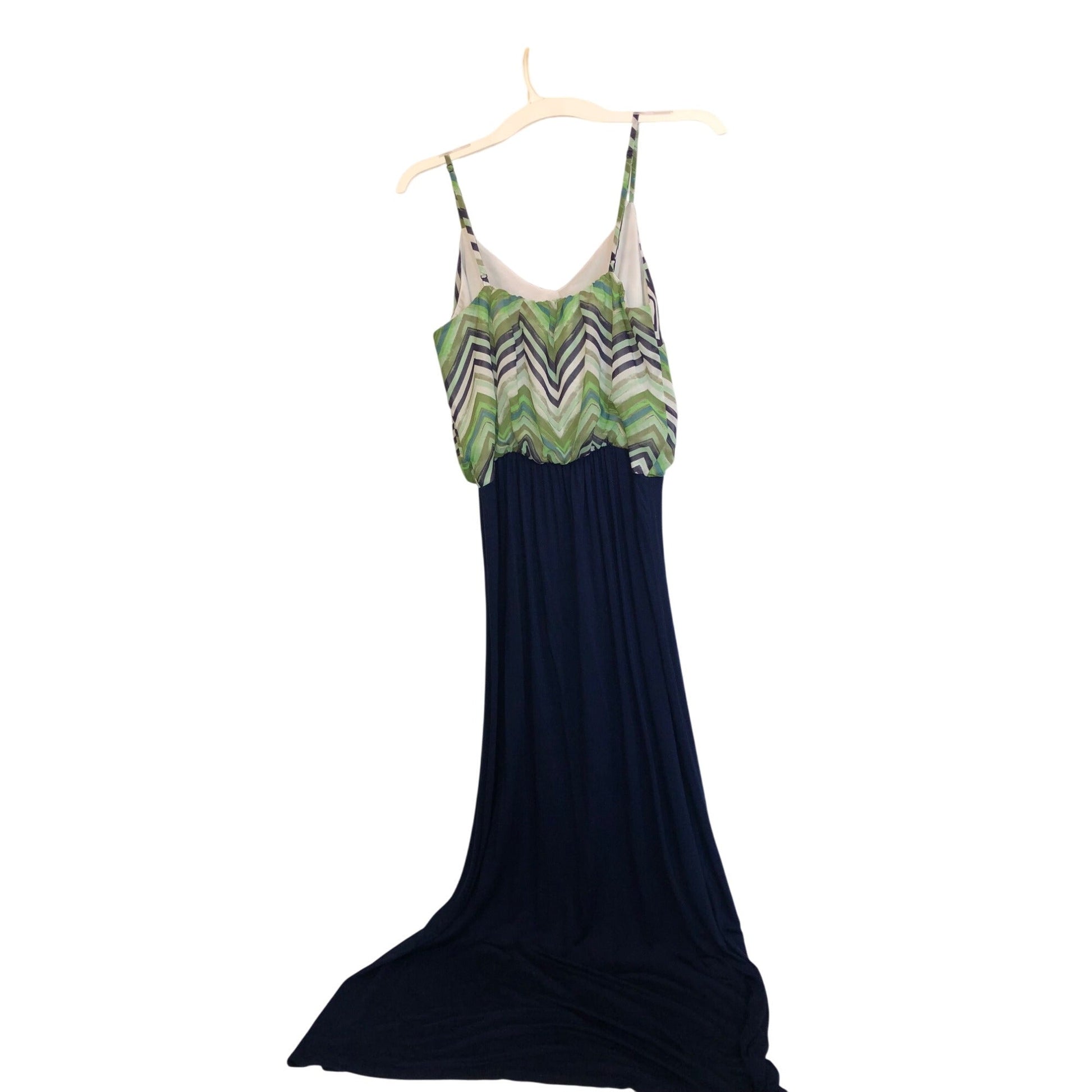 A New Approach Blue Green and White Maxi Dress With Chevron Print Top