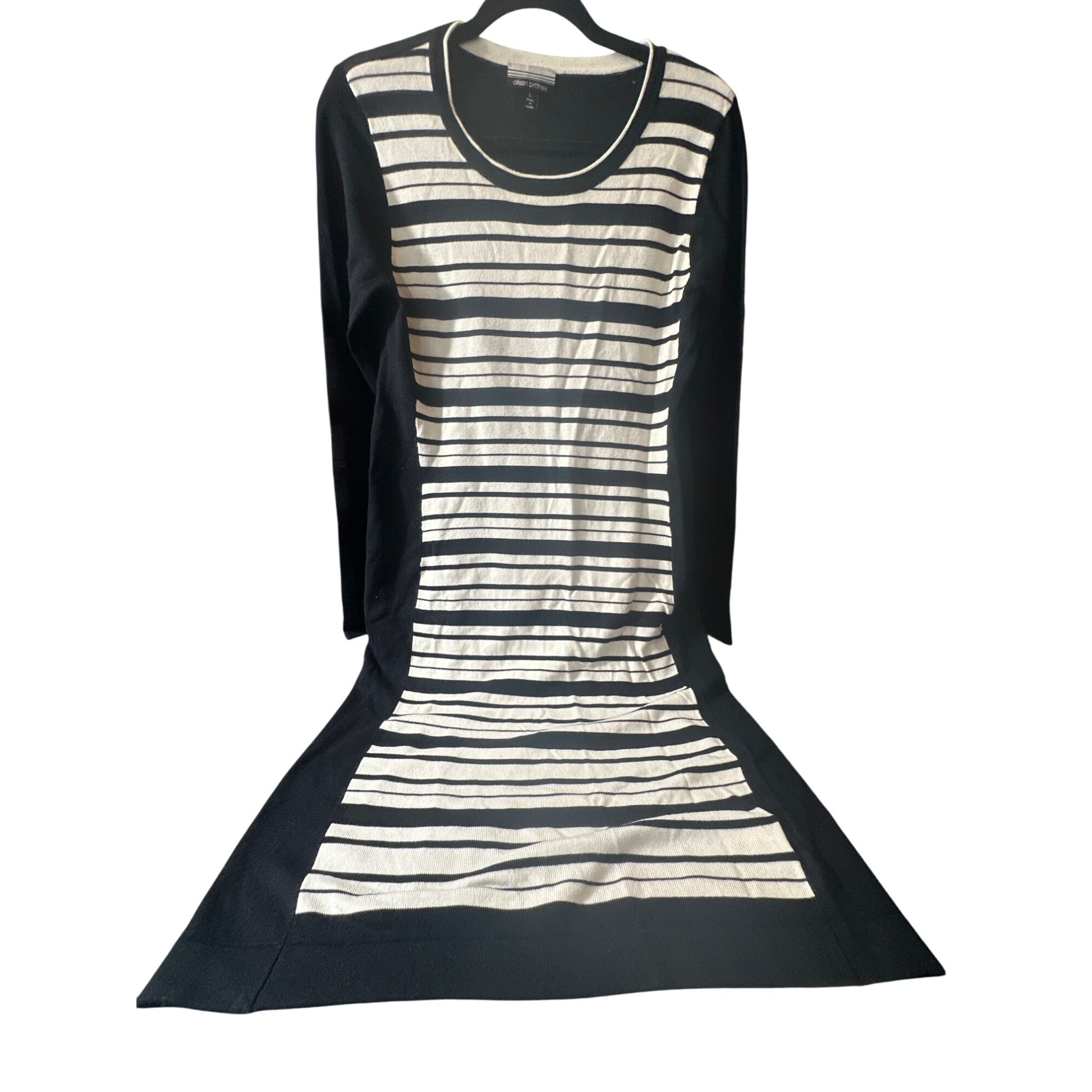 Allison Brittney Women's Black/White Stiped Long Sleeve Dress Size L Pre-Owned