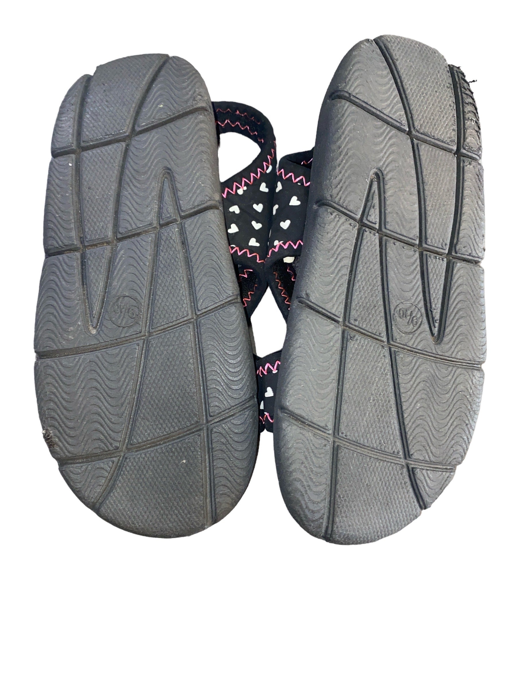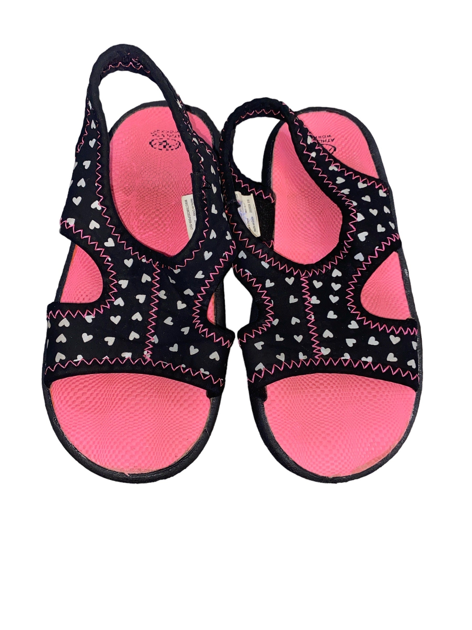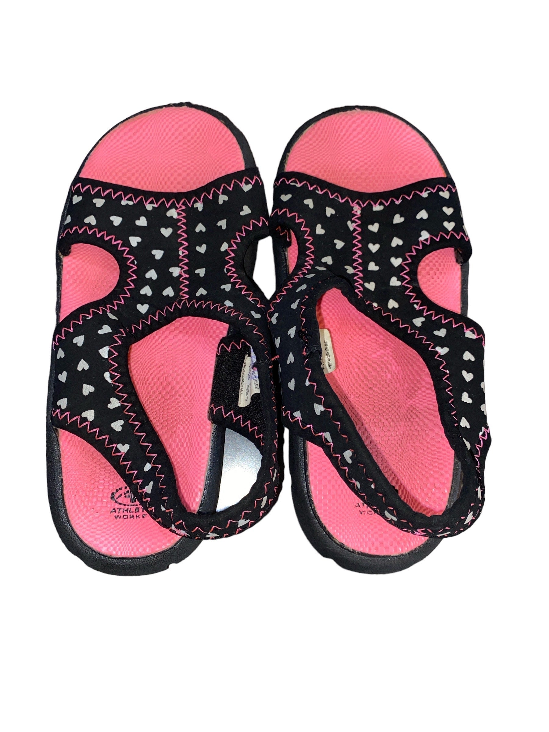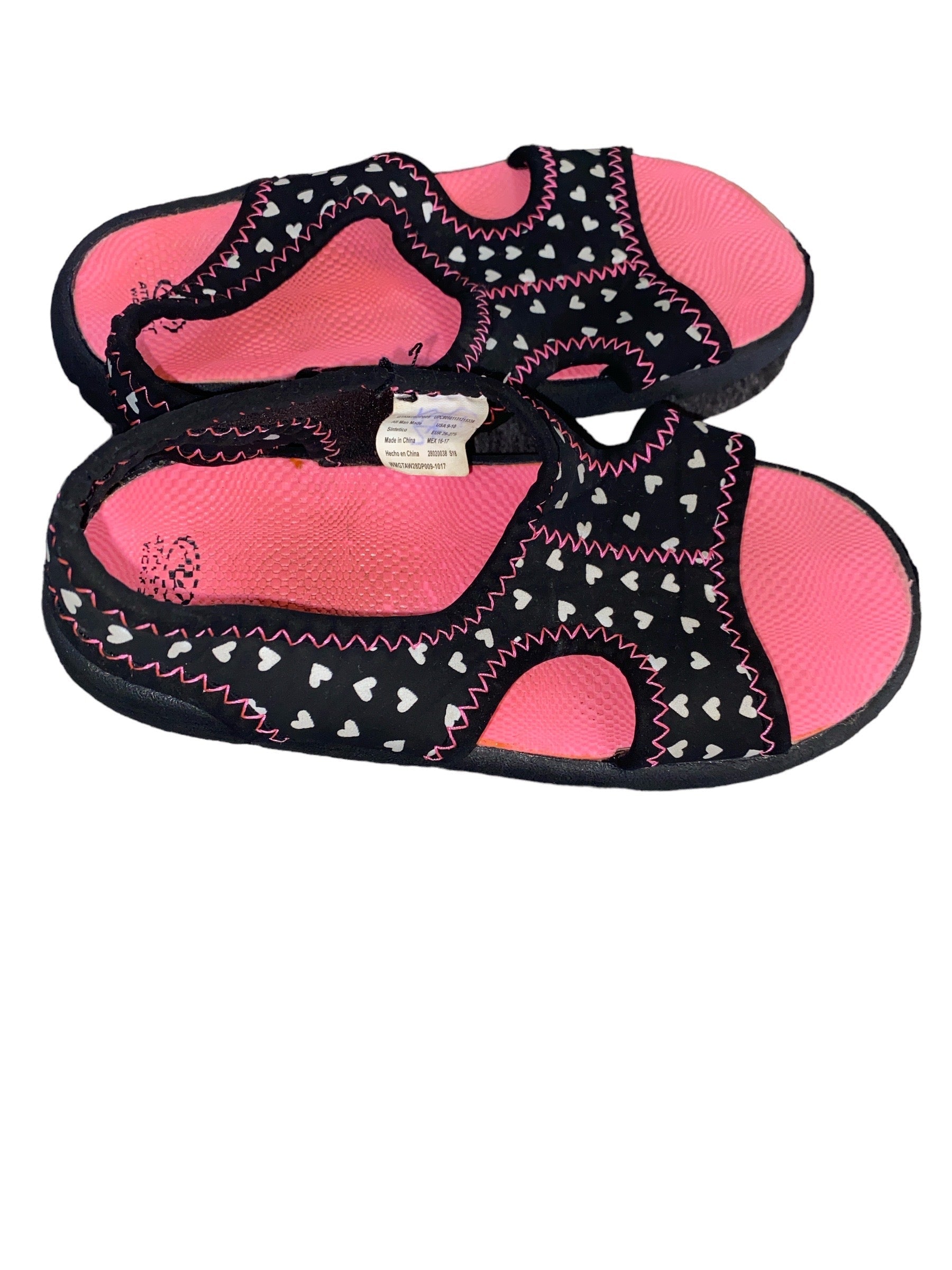 Athletic Works Pink/Black/ White With Hearts Slip On Sandals Girls' Size 9/10 Pre-Owned