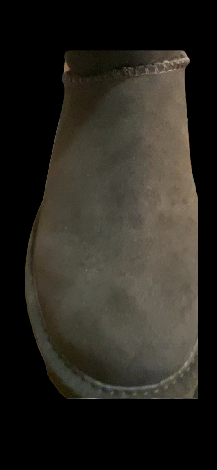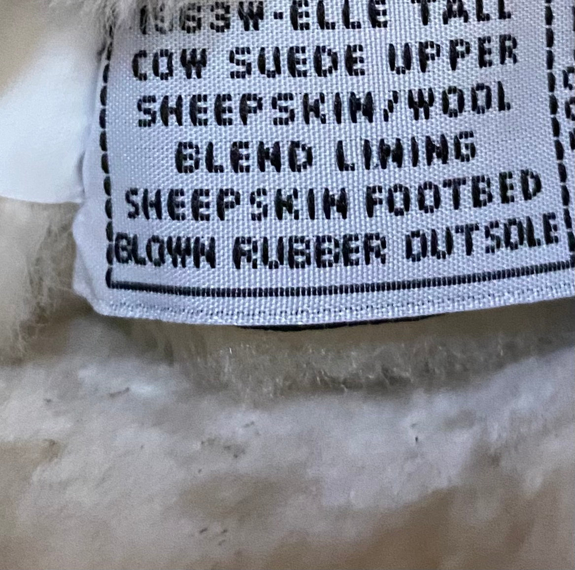 Material: Cow Suede Upper Sheepskin/Wool Blend Lining Sheepskin Footbed Blown Rubber Outsole