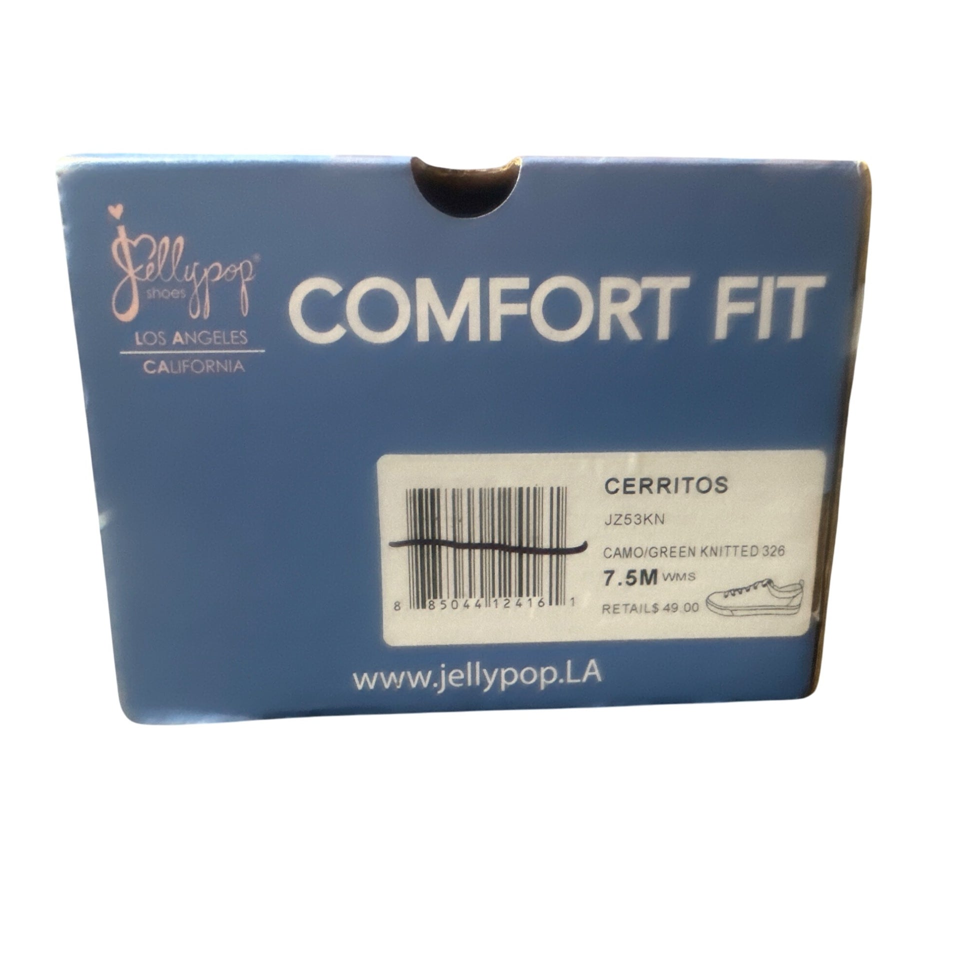 Step into comfort and style with Jellypop Cerritos Sneakers in camo green knit. Featuring a secure tie closure, round toe design, and cushioned insole, these women's size 7.5M shoes offer all-day support. New and imported, they come packaged in the original box, ready to elevate your footwear collection.