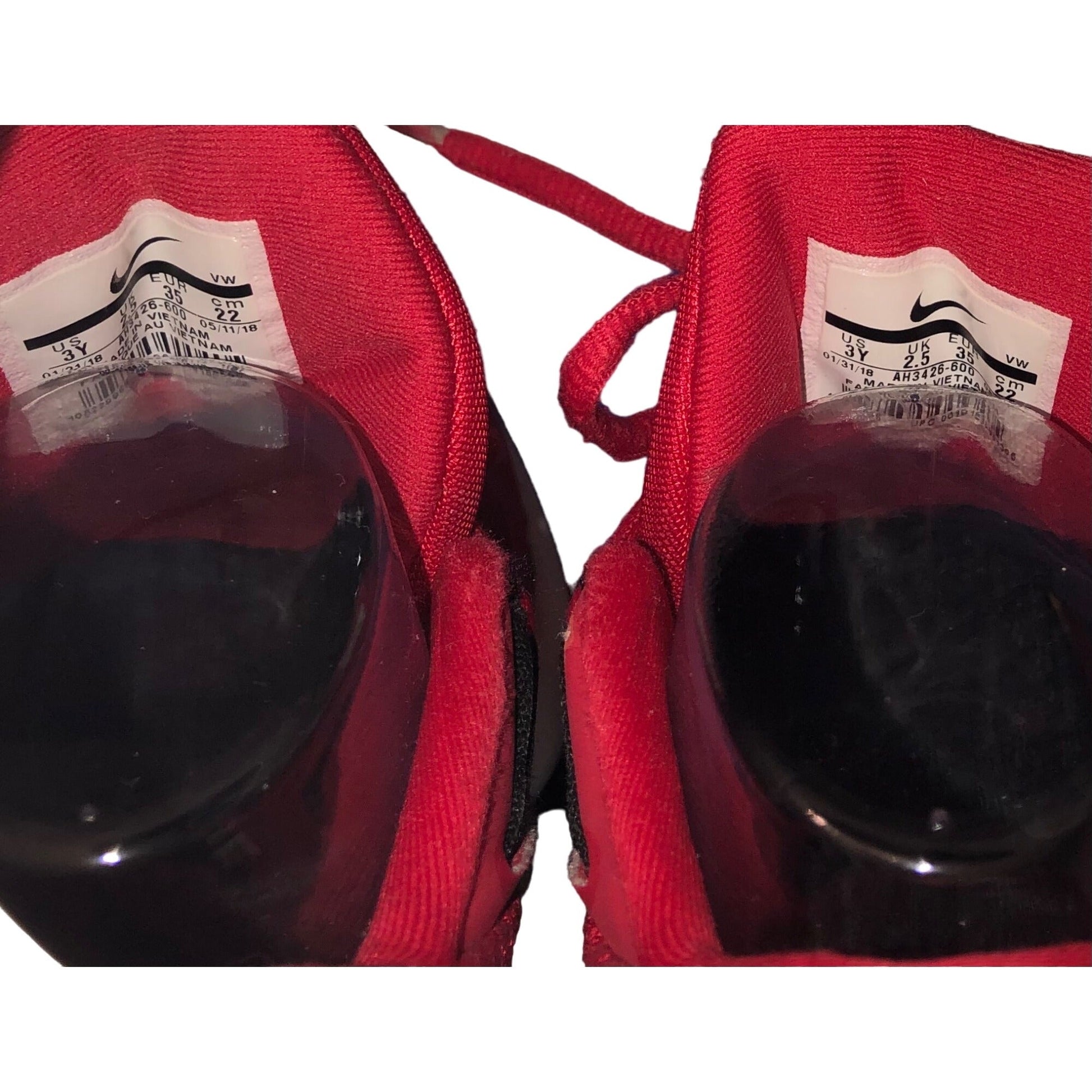 Elevate your game with these Nike Air Infuriate II Mid Basketball Sneakers in red and black, sized for boys 3! These pre-owned sneakers are in fair condition, with rubber slightly separated from the toe for added flexibility on the court. Upgrade your basketball game with these stylish and durable kicks!